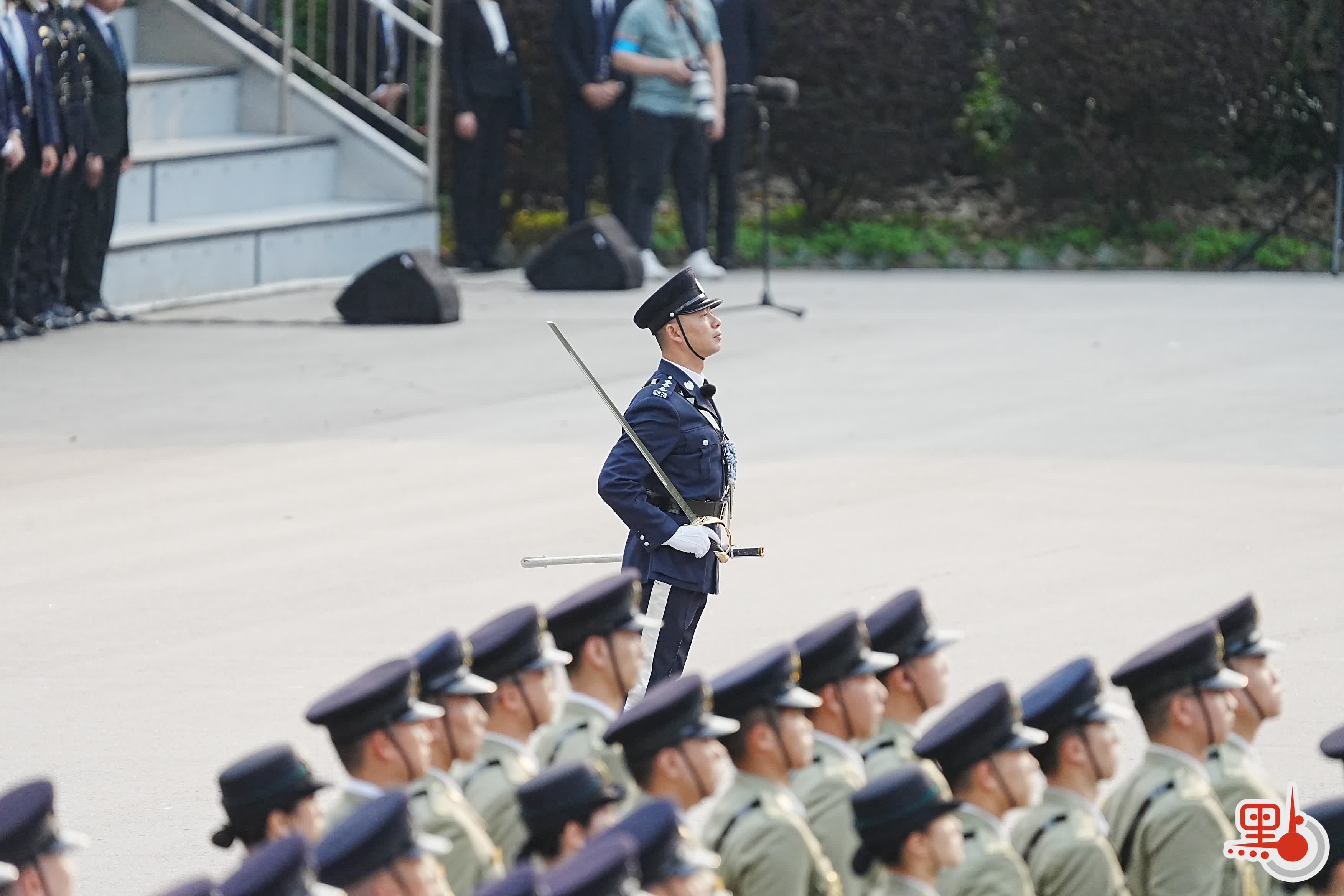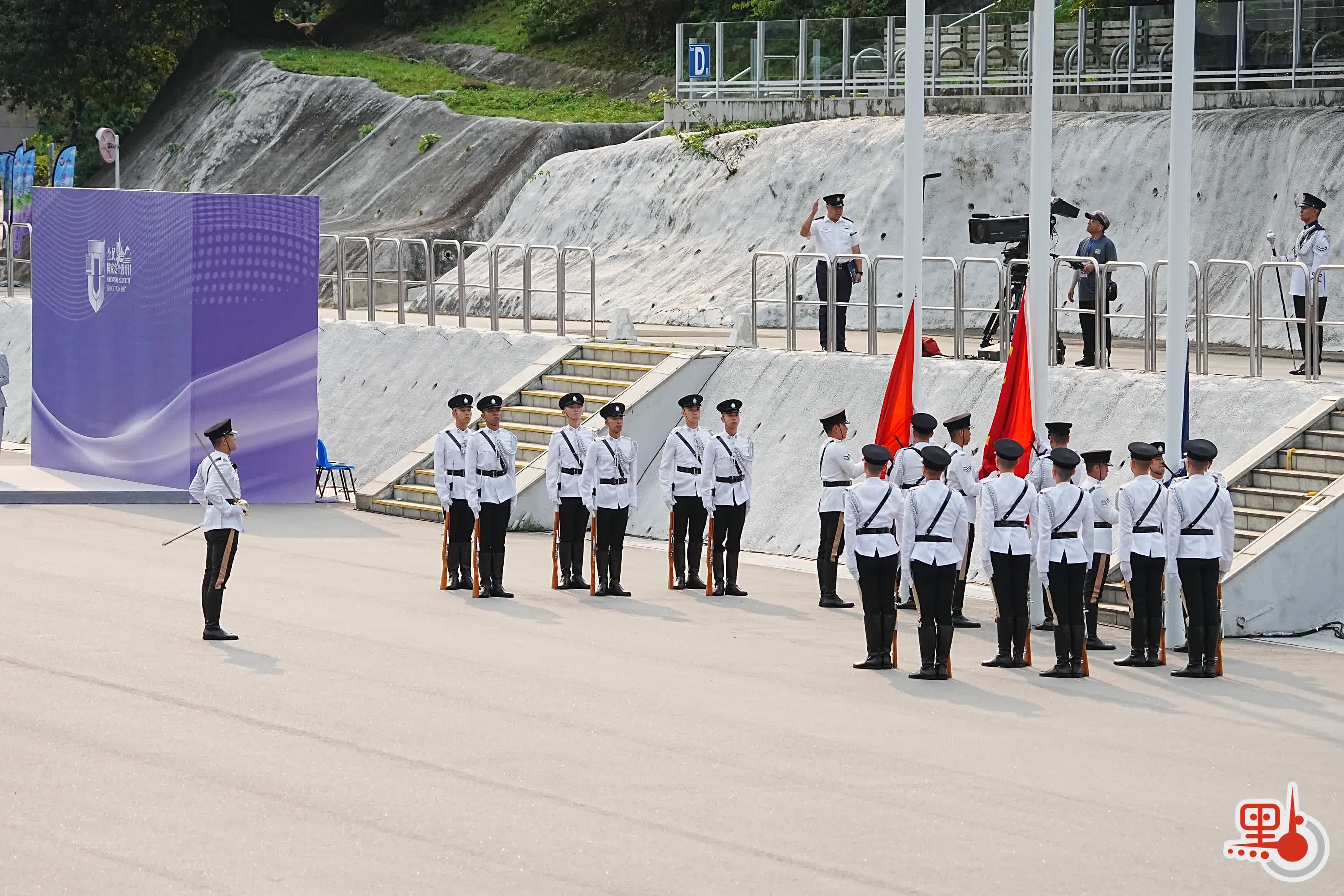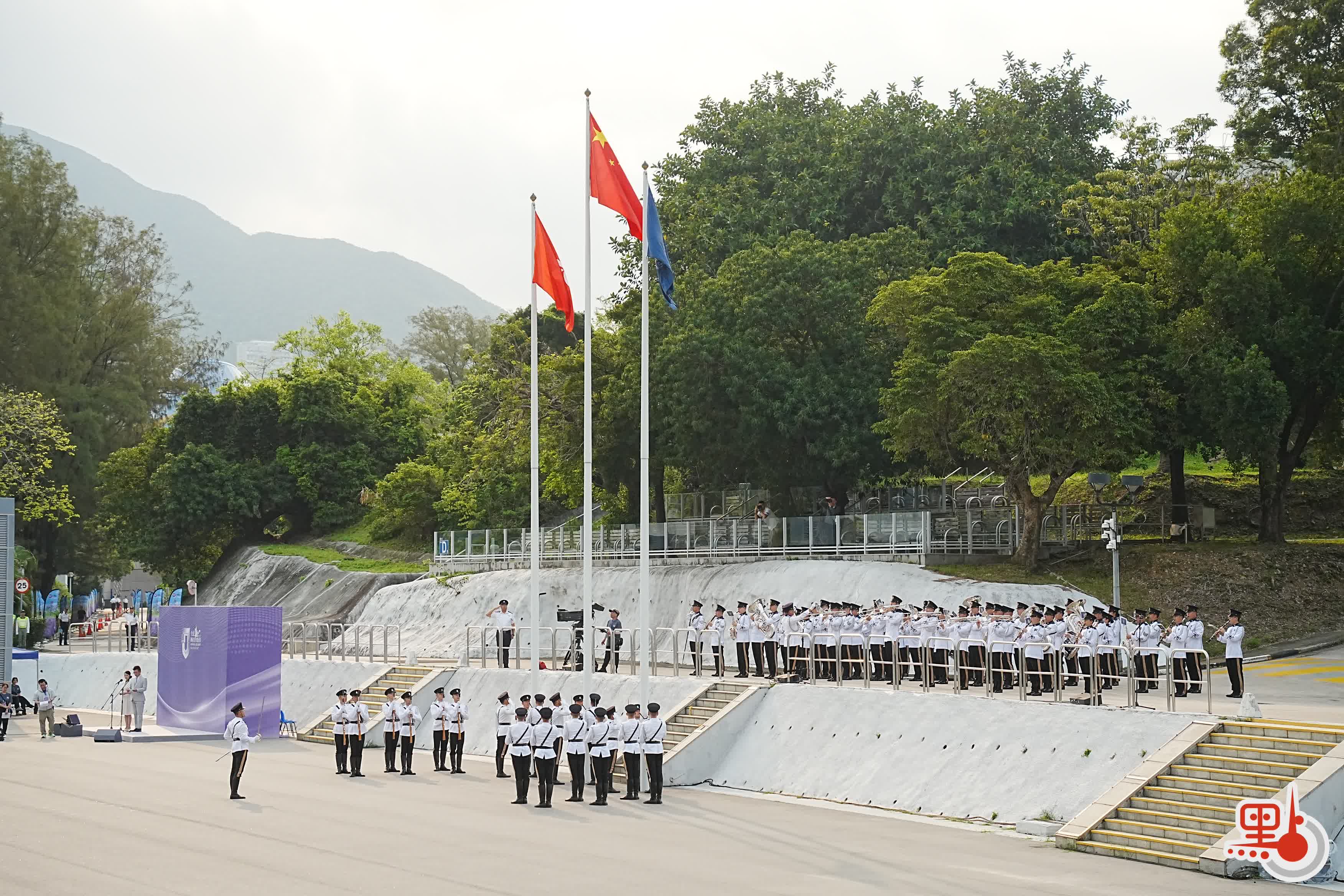 警察銀樂隊率先奏樂進場,表演多首樂曲,為儀式揭開序幕。紀律部隊儀仗隊隨後步操入場,警察護旗方隊升起國旗和區旗,現場奏唱國歌。升旗儀式結束後,政務司司長陳國基致辭。