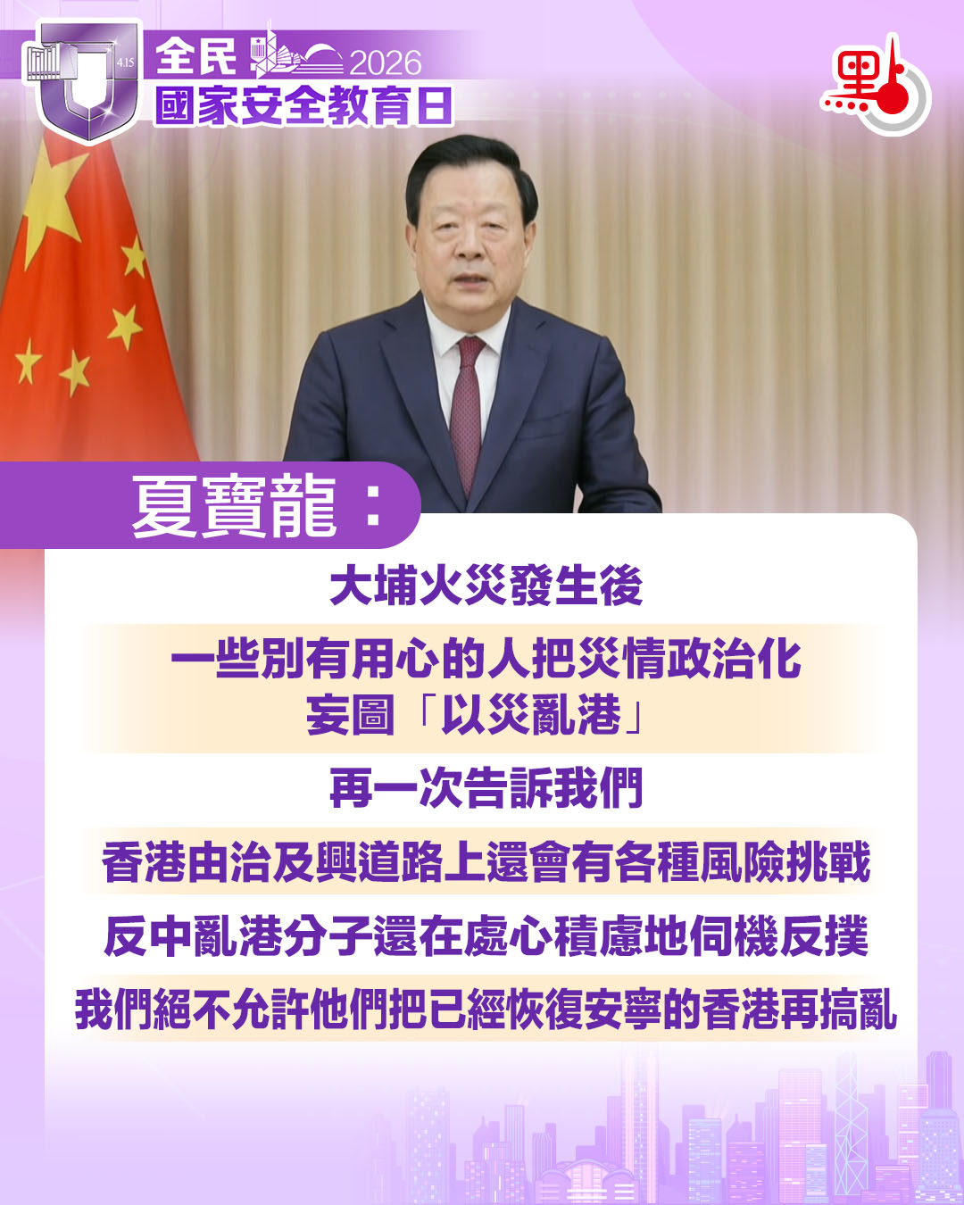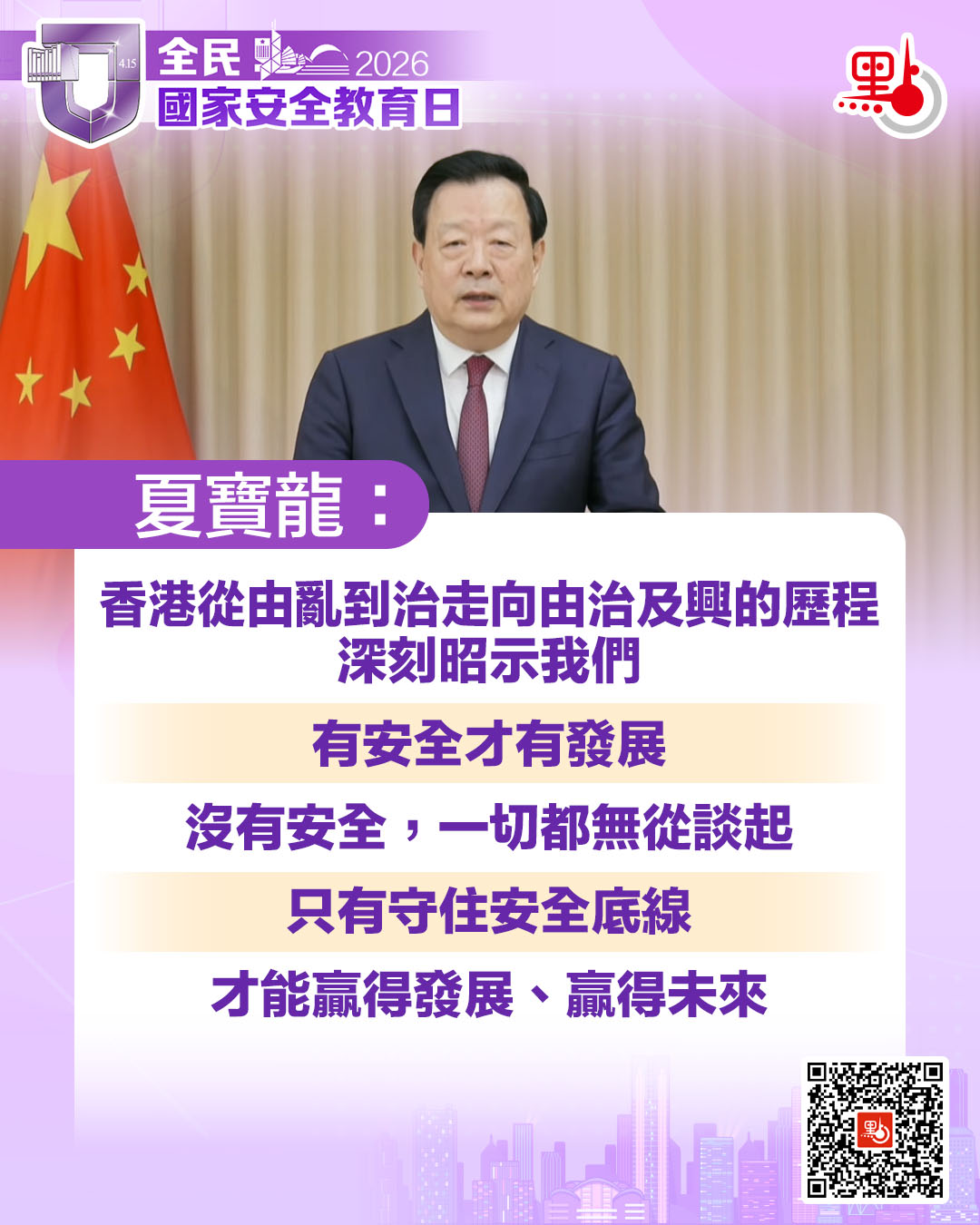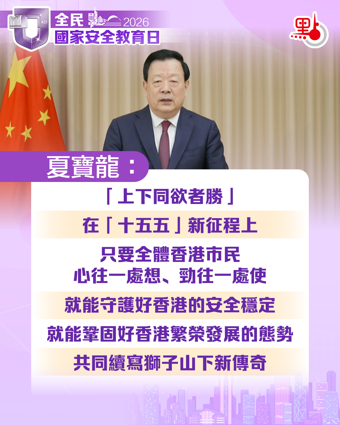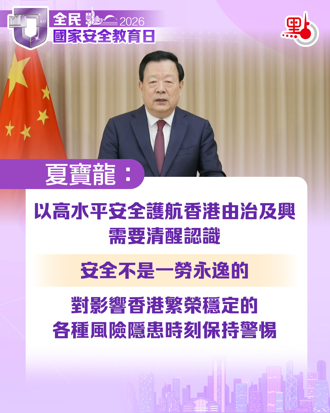 (有片)國安教育日|夏寶龍致辭要點一圖睇