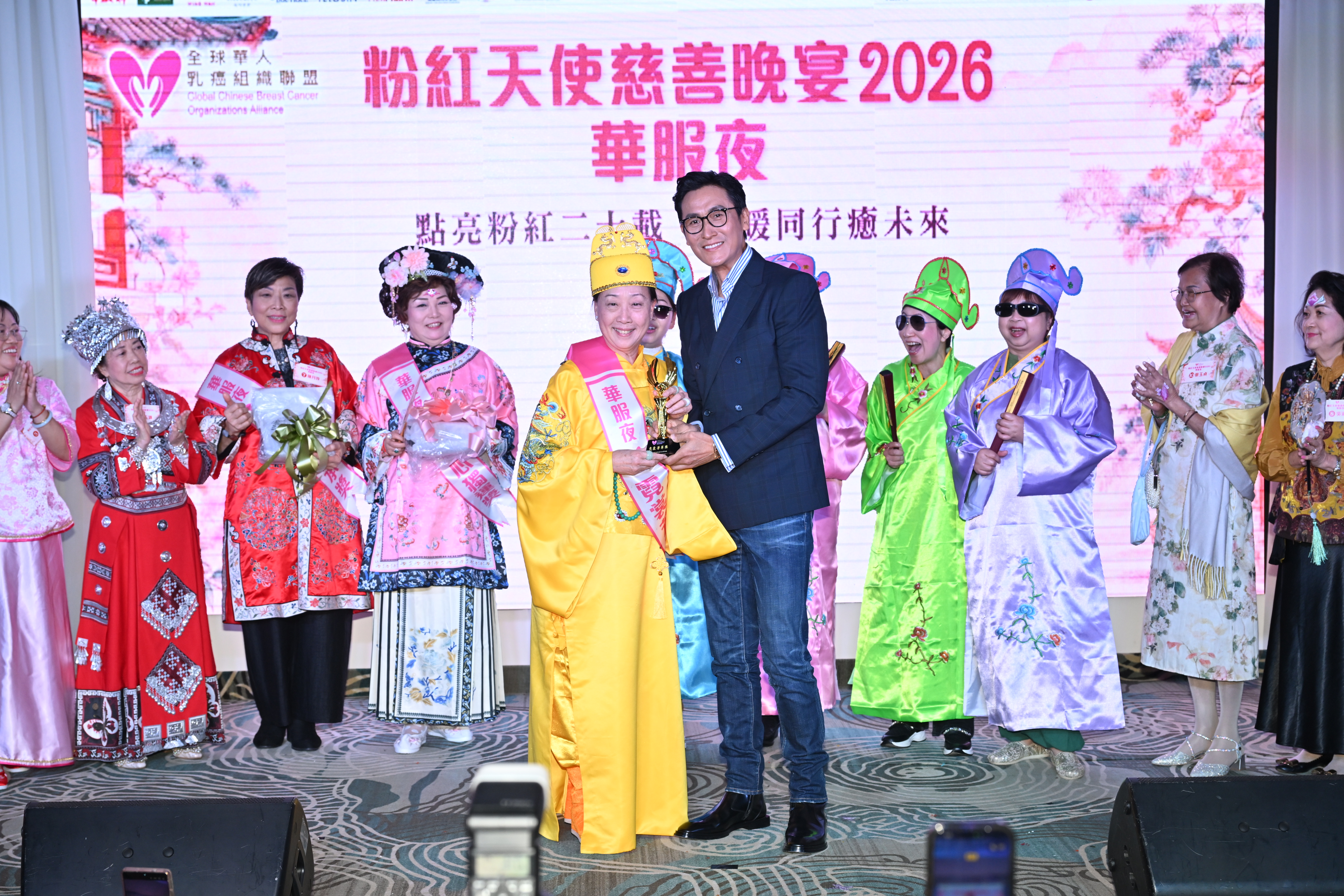 【點新聞報道】為慶祝「全球華人乳癌組織聯盟」成立二十周年,大會日前盛大舉辦「粉紅天使慈善晚宴2026華服夜」。當晚超過四百位姊妹、善長及嘉賓齊聚一堂,眾人身穿瑰麗華服出席,更邀得「影視男神」馬德鐘驚喜現身。