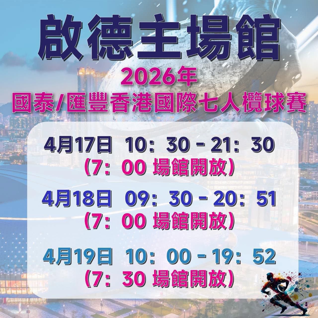 【點新聞報道】2026年國泰/滙豐香港國際七人欖球賽將於17日至19日在啟德主場館舉行,今年恰逢賽事50周年,意義非凡。預計今年賽事將再次吸引無數來自世界各地的球迷入場,親身見證30支國際勁旅上演共72場精彩對決(七欖賽程)。
