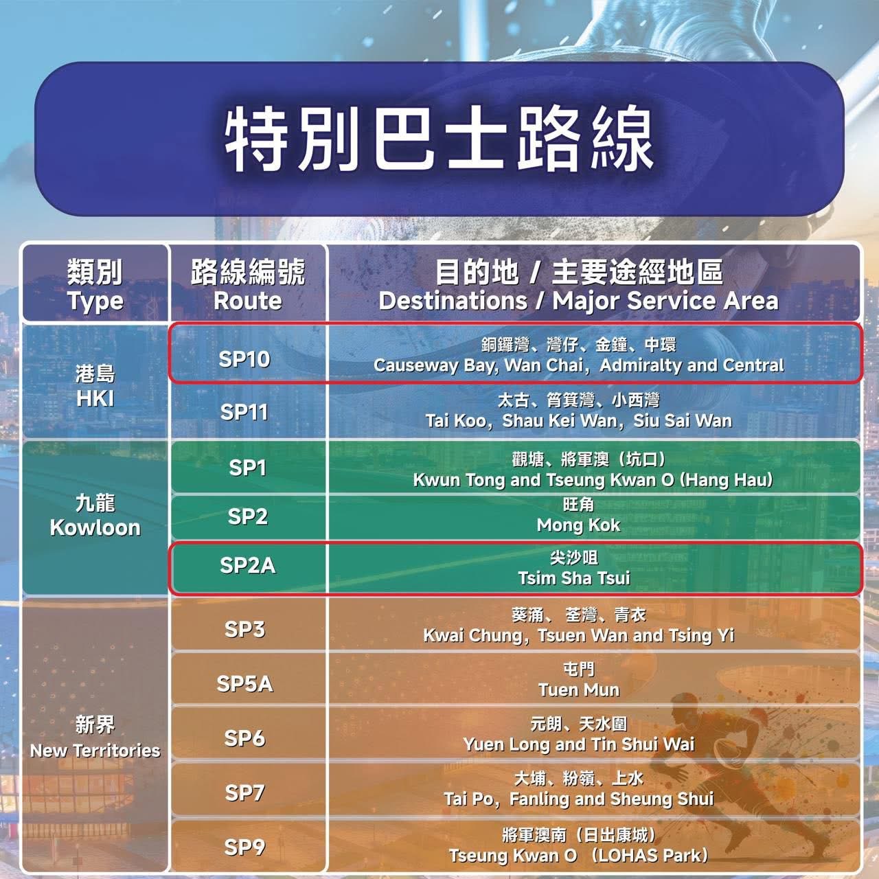 港鐵將加密屯馬綫的班次,應付乘客需求。專營巴士公司將於每日最後一場賽事完結後提供10條特別路線,前往港九新界各主要地區。