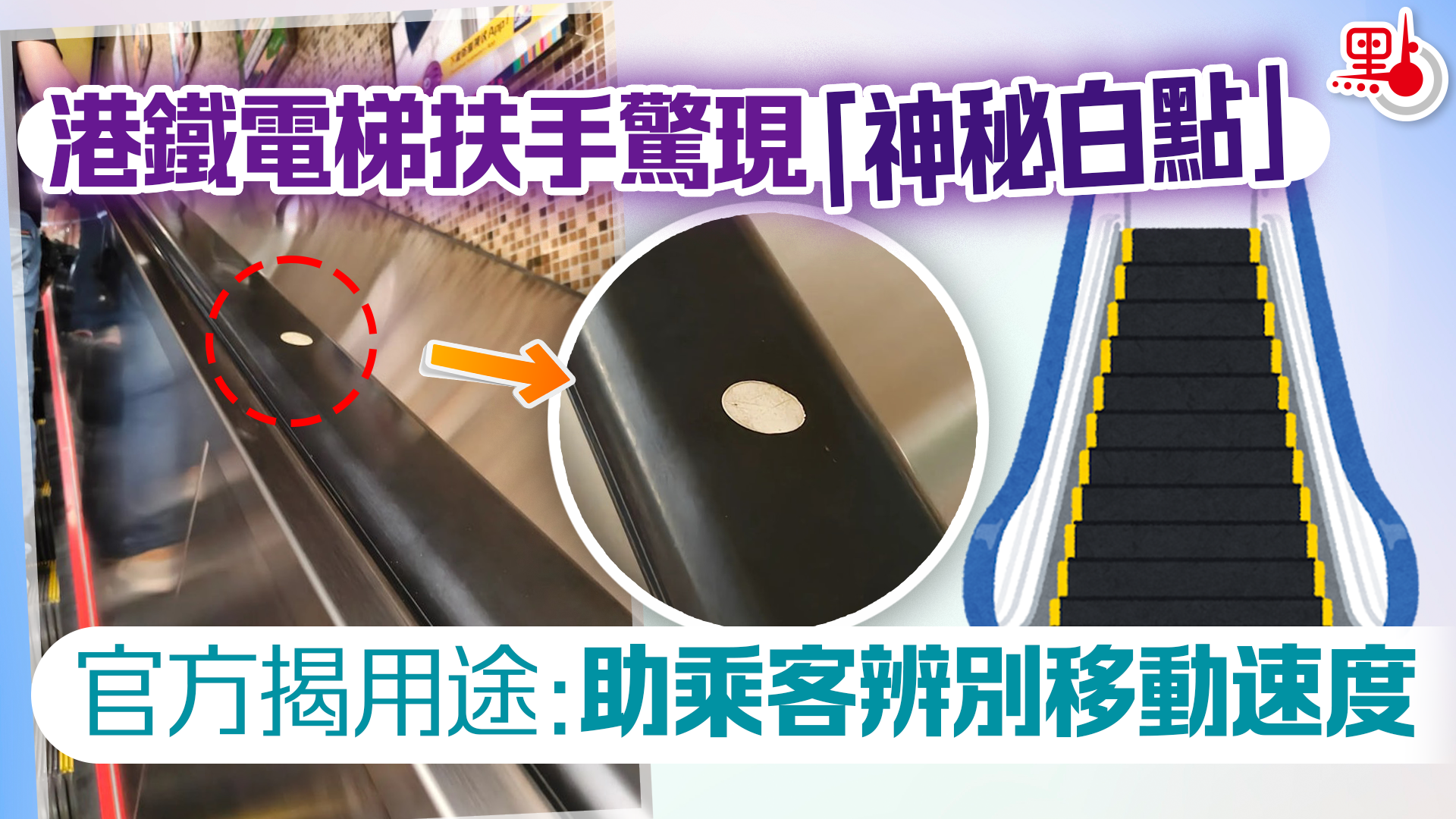 港鐵電梯扶手驚現「神秘白點」 官方揭用途:助乘客辨別移動速度