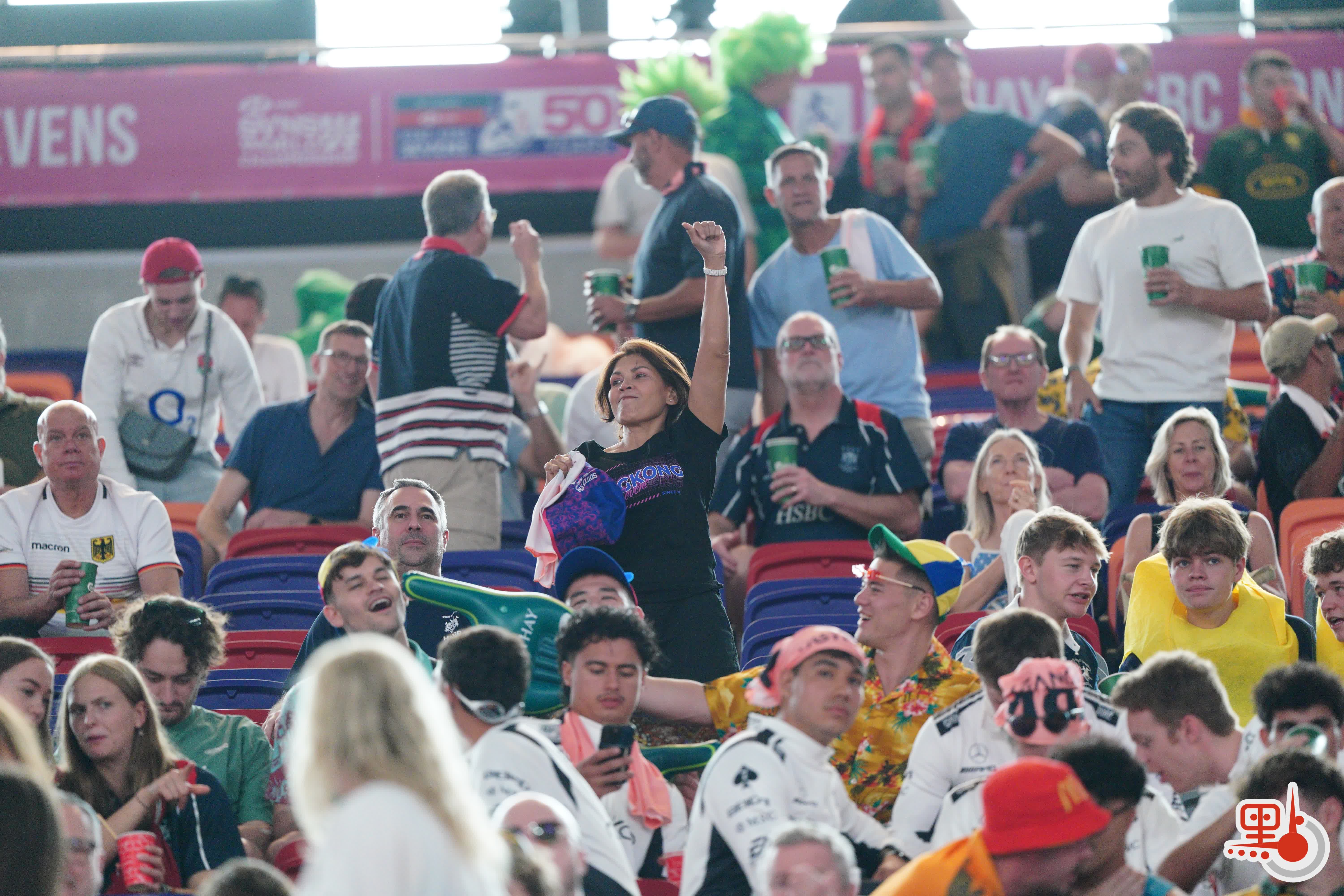 球賽未開打已有熱烈氛圍。國際七人欖球賽的球迷有盛裝打扮、「扮鬼扮馬」的「傳統」,這股氛圍今年同樣席捲啟德。點新聞記者現場所見,不少球迷扮成孖寶兄弟等經典角色,亦有球迷扮成水果、飲料等食物,還有不少球迷穿着「我愛香港(I love HK)」T恤衫。一眾盛裝打扮的球迷更在看台上大合唱,支持球隊,high爆現場!