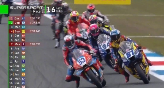 今日WSBK荷蘭站首回合雨中開賽。張雪機車在第二位發車,車隊車手德比斯一度第一領跑,卻在最後一圈時被反超落到第五,在最後時刻德比斯抓住機會追上兩名車手並以第三名完賽,但回放顯示其最後超車時犯規被罰,最終成績為第四名。