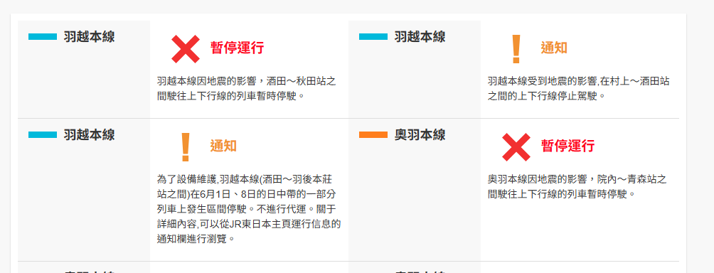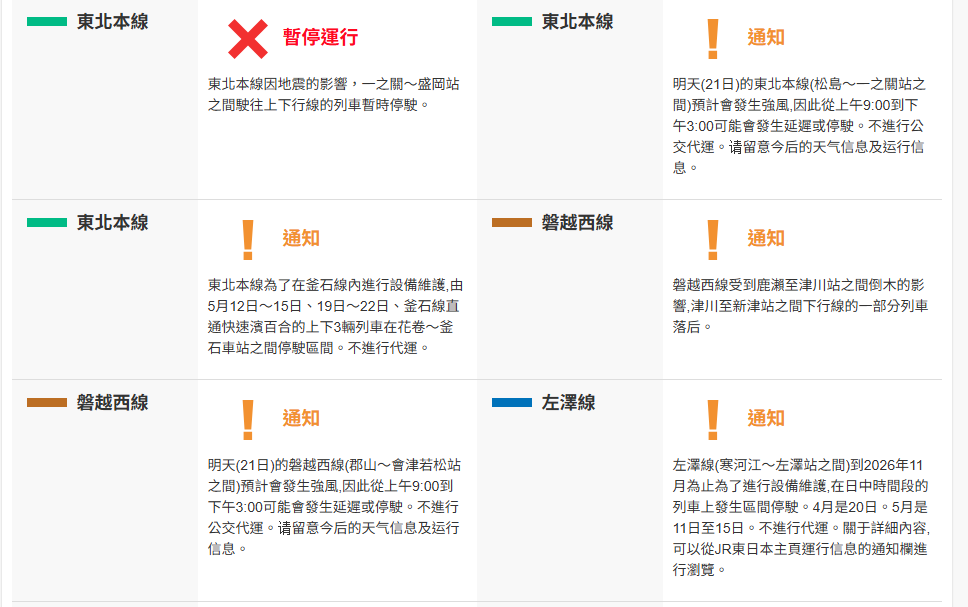 據JR東日本公司稱,由於地震的影響,東北新幹線從下午5點前開始暫停了東京站和新青森站之間的上行和下行線路的服務。日本氣象廳將於當地時間下午6時舉行記者會,說明海嘯預警點及其他相關資訊。