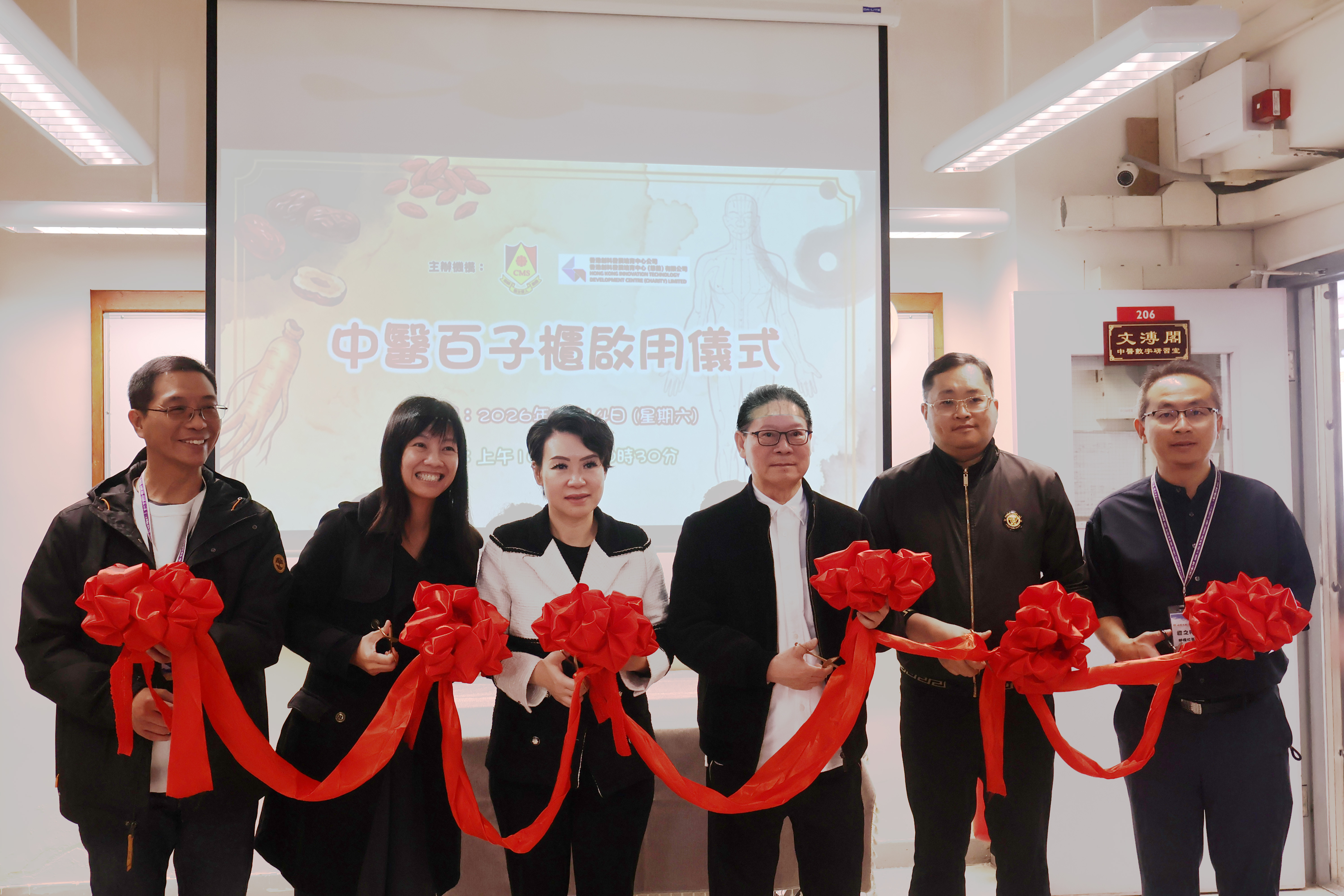 曹雪蓮校長表示:「中醫百子櫃的啟用,希望透過傳統中醫藥的實物展示與體驗,讓學生從中學階段開始接觸『藥食同源』的理念,弘揚中華傳統醫學理念,為香港醫護界培育更多具中西醫結合視野的專才。」