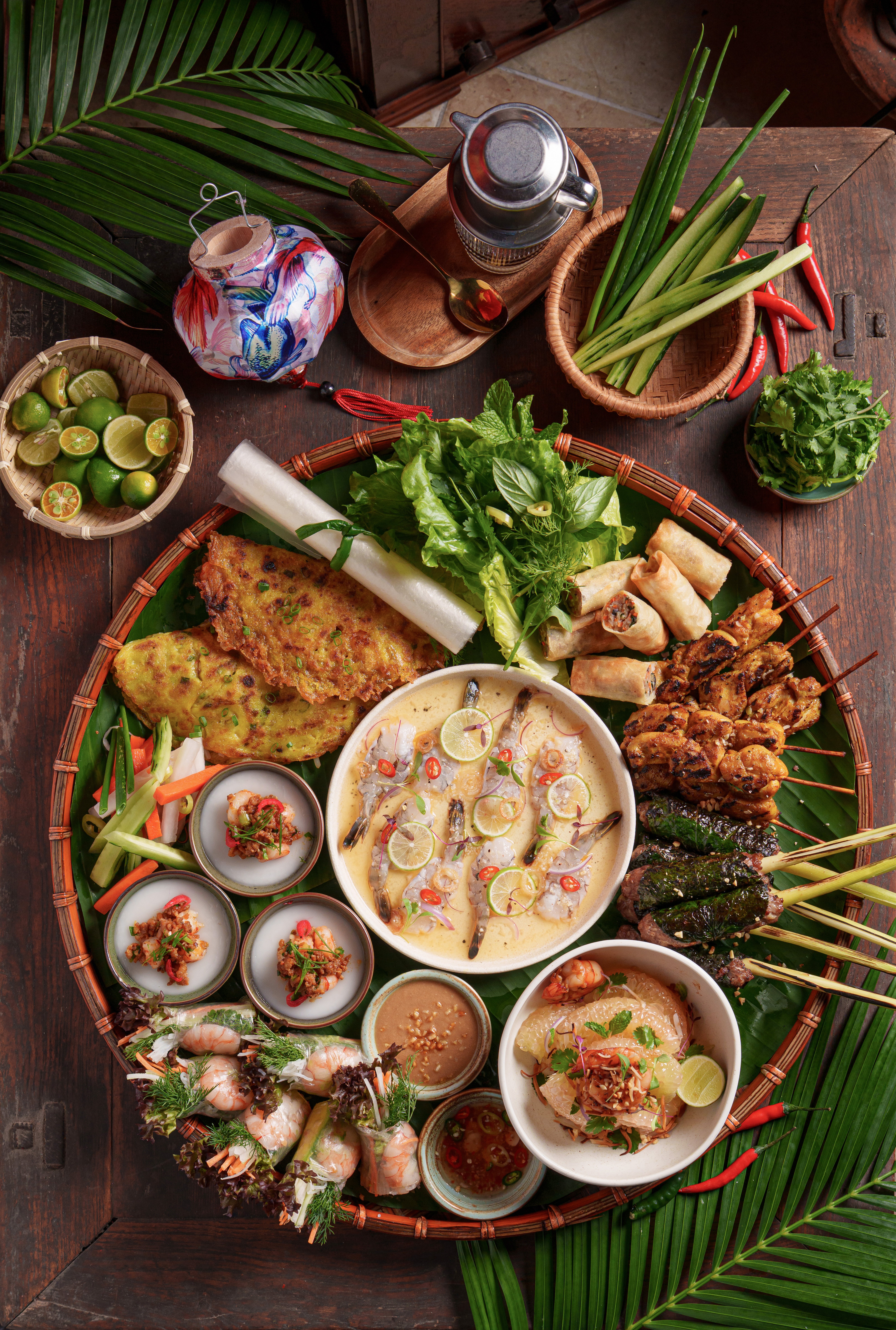 全新矚目的6人分享「越式滋味拼盤」以巨型竹編托盤呈獻多款特色前菜,包括順化浮萍糕、鮮蝦牛油果米紙卷、香芋豬肉春卷、炭燒雞肉串燒及越南蜜柚燒蝦沙律,並可選配越式香茅炸蝦卷或越式檳榔牛肉卷,以及越式生牛肉他他或越南鮮蝦豬肉煎薄餅。僅限於尖沙咀圓方店獨家供應,定價為港幣688元及738元。