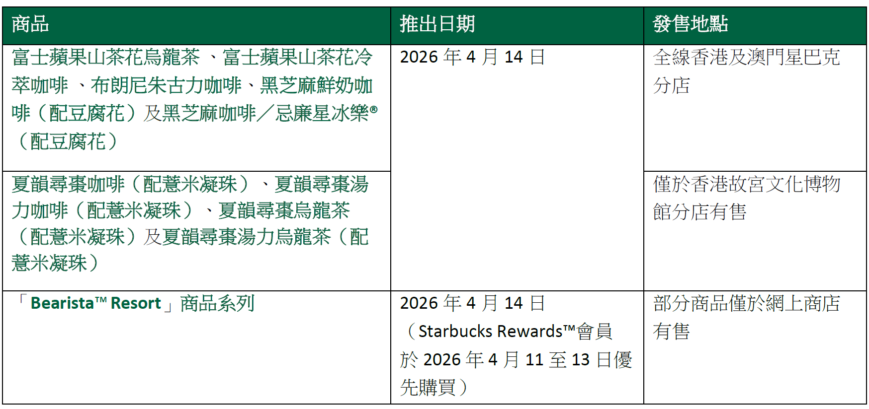 星巴克香港故宮文化博物館分店將獨家限定推出「夏韻尋棗」系列,包括夏韻尋棗咖啡(配薏米凝珠)、夏韻尋棗湯力咖啡(配薏米凝珠)、夏韻尋棗烏龍茶(配薏米凝珠)及夏韻尋棗湯力烏龍茶(配薏米凝珠),以清甜紅棗風味迎接盛夏。飲品以清甜紅棗為基調,配上薏米凝珠,口感清爽醒神又易入口。