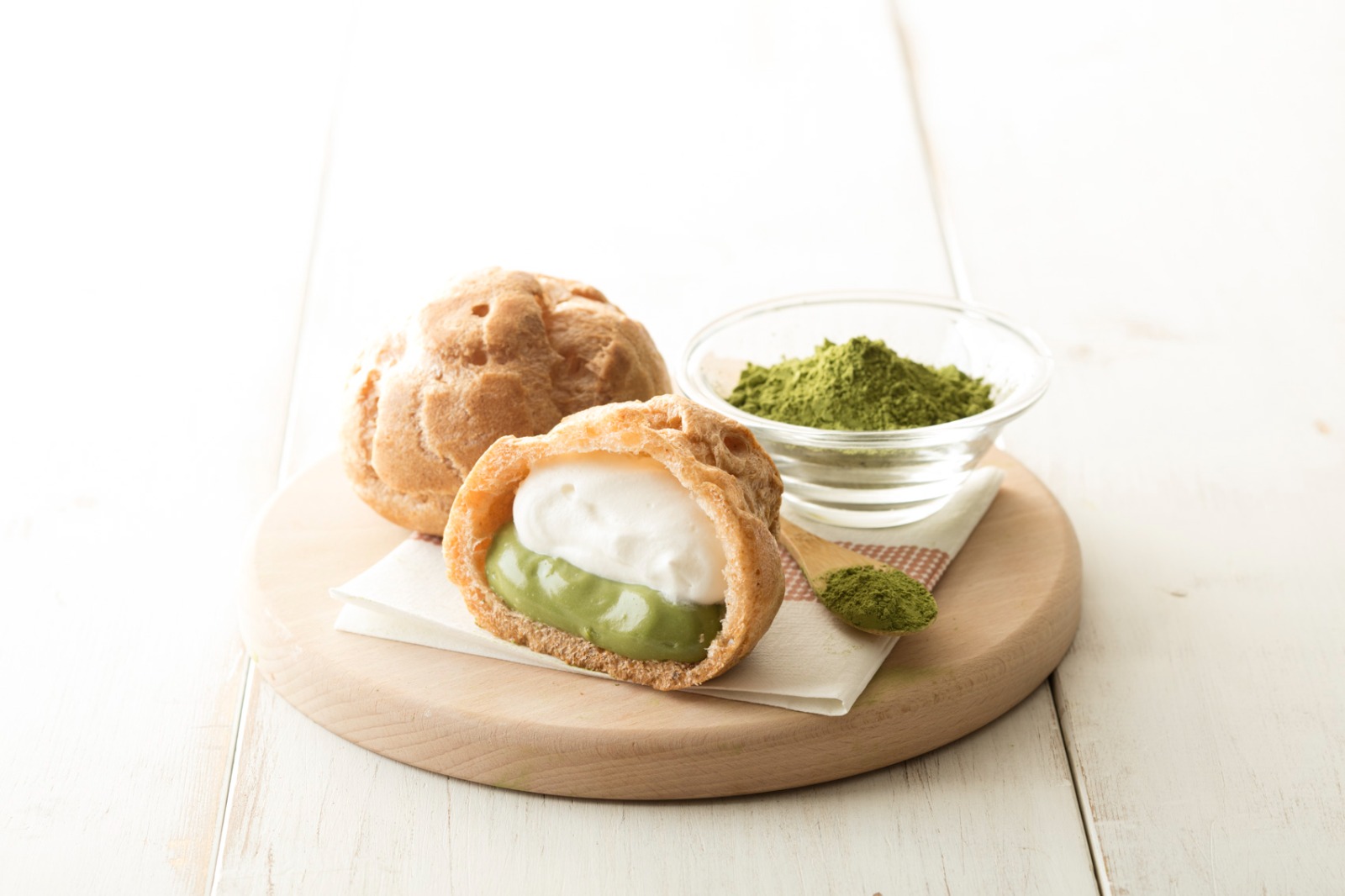 雙味泡芙(抹茶及忌廉):清新的抹茶香氣率先撲鼻而來,來自日本的宇治抹茶帶着微微的苦澀與深邃的甘甜。